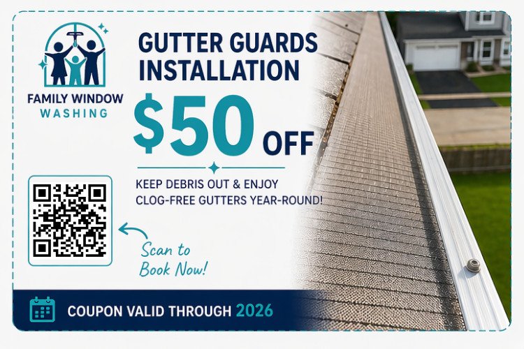 Save on professional window washing, gutter cleaning, power washing, and gutter guard installation with our current coupons.